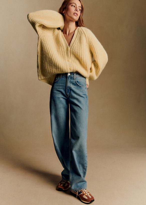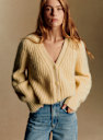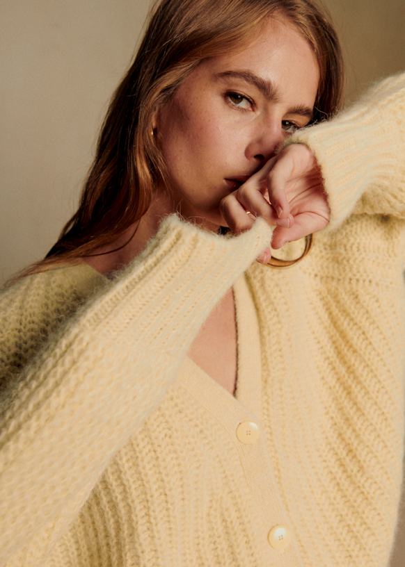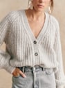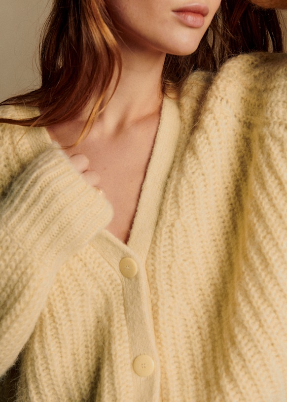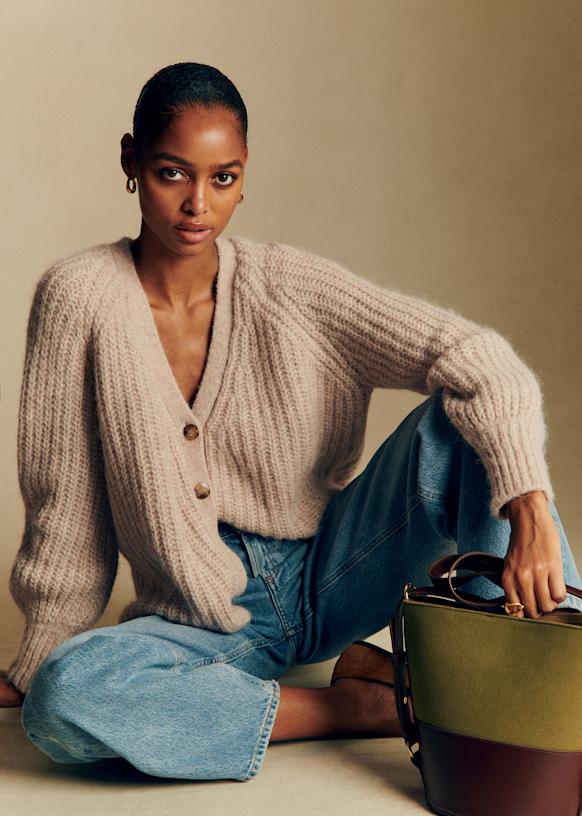 - Cárdigan de alpaca y lana de manga larga ligeramente globo