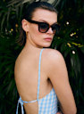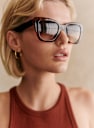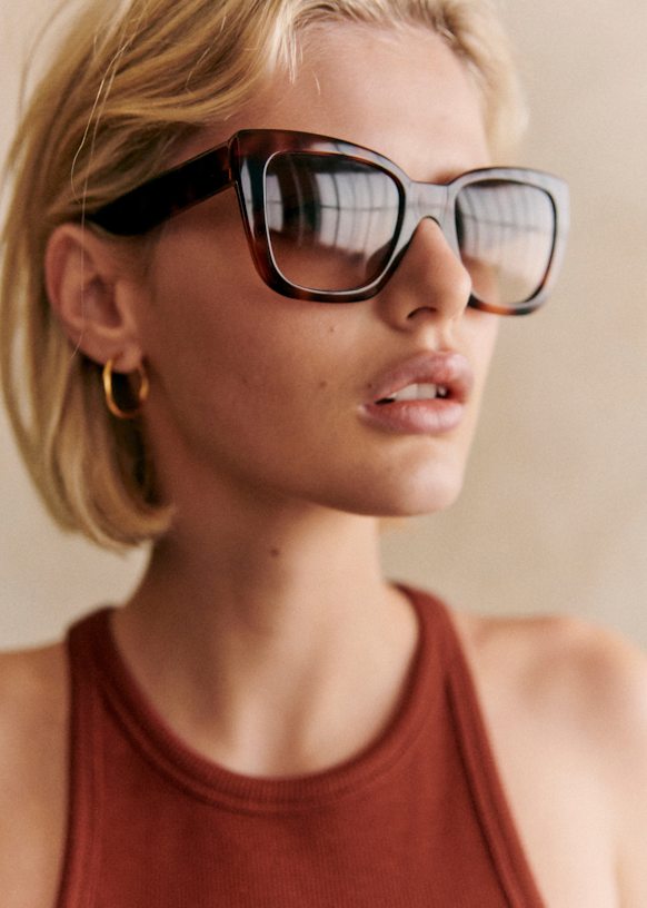 Nuestro modelo oversize adaptado a cada rostro. Una montura de acetato italiano y cristales anti-UV para una protección óptima.