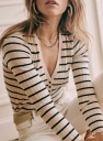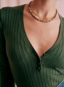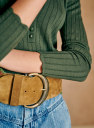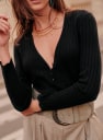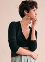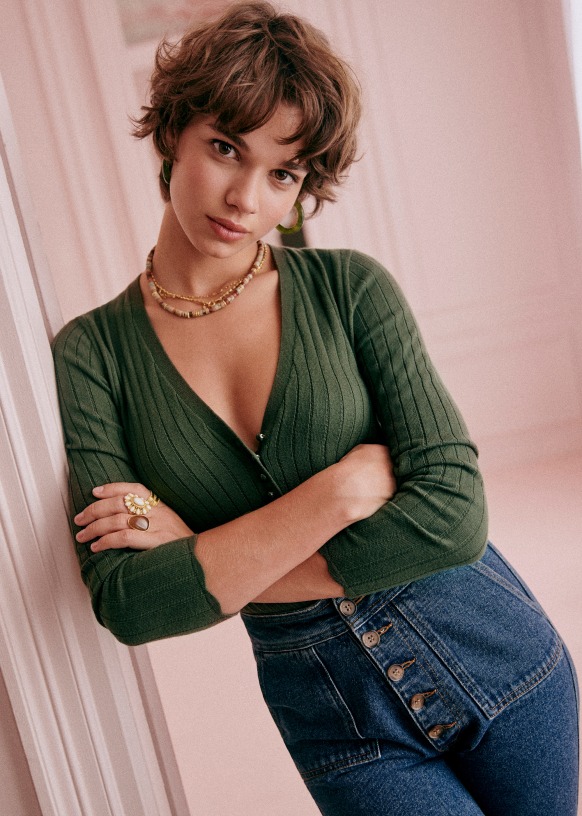 - Escote de pico cerrado con cuatro botones