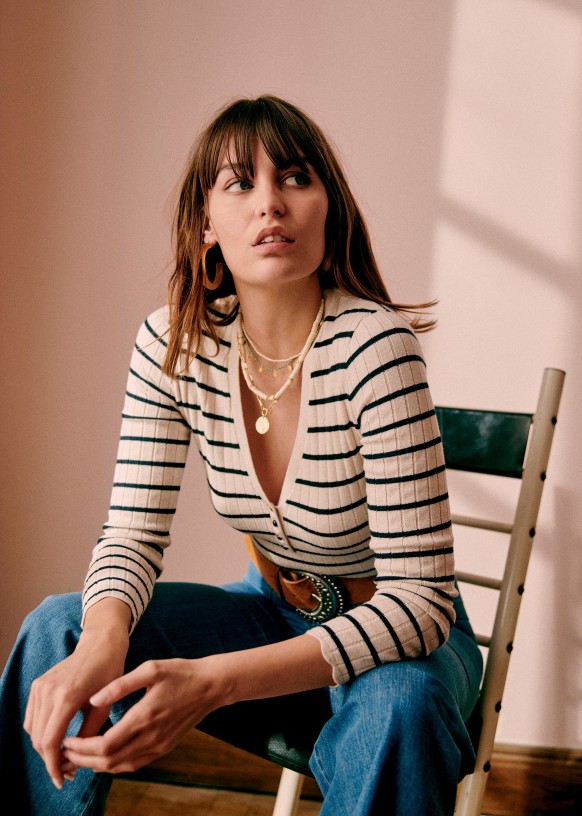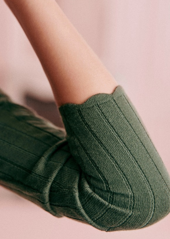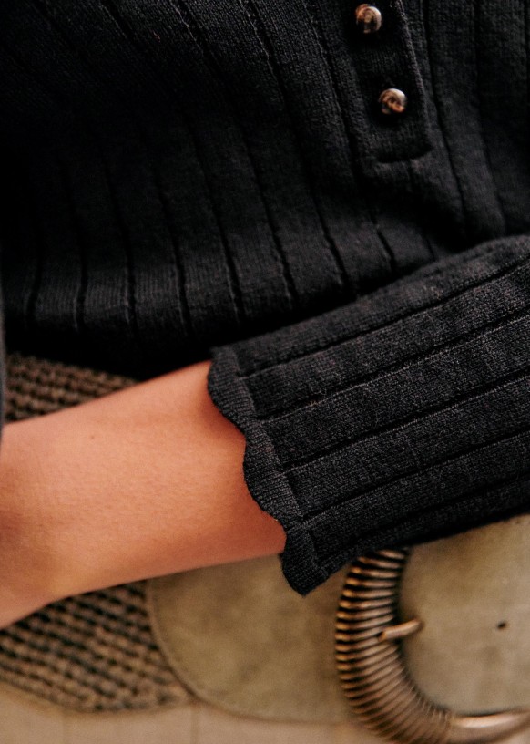 - Acabados festoneados en el bajo de la manga