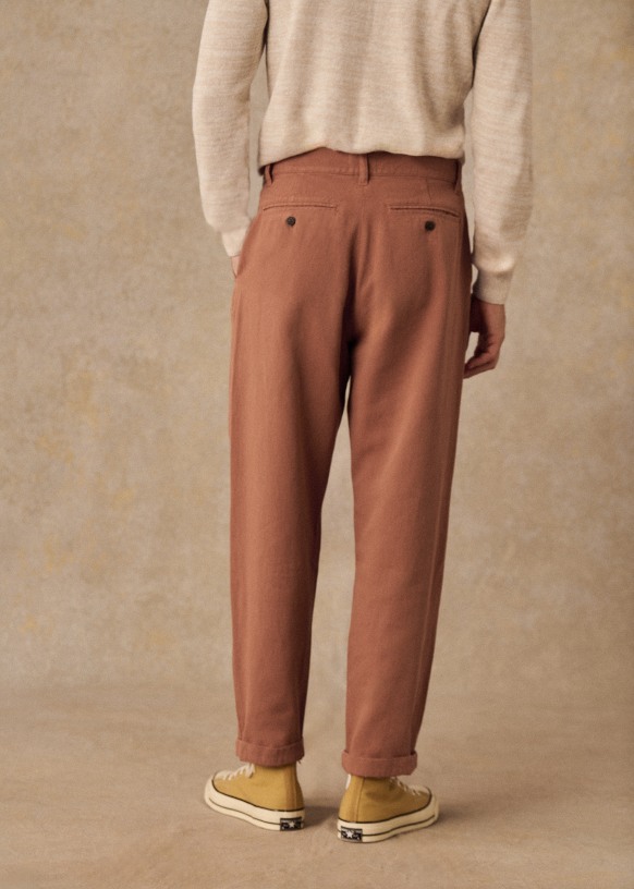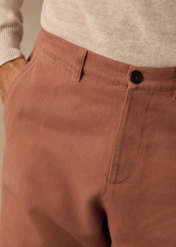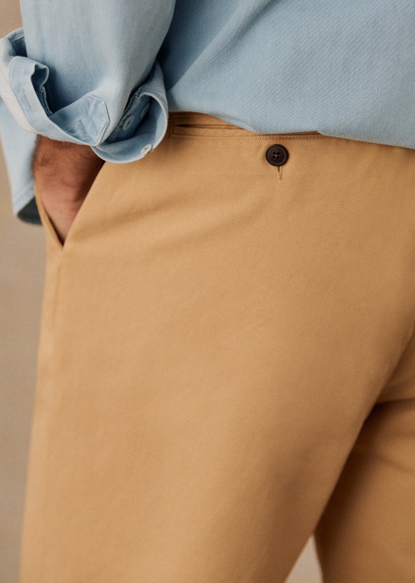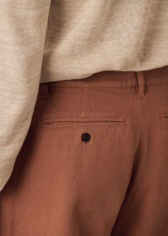 - Corte recto2 bolsillos laterales en la parte delantera2 bolsillos traseros ribeteados con cierre abotonado100 % algodónLongitud entrepierna: 75,75 cm (para una talla 31)Abertura parte inferior de la pernera: 19 cm (para una talla 31)