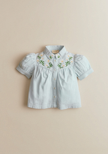 Bordado Contrastado Margarita Fondo Azul Cielo