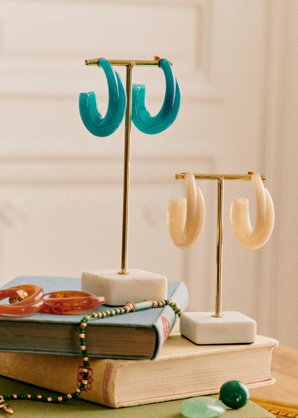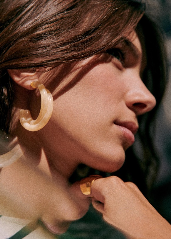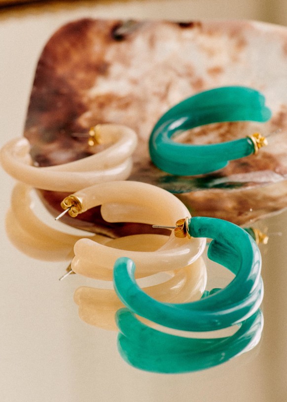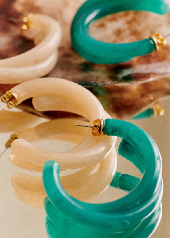 - Aros de latón dorado con oro fino y resina