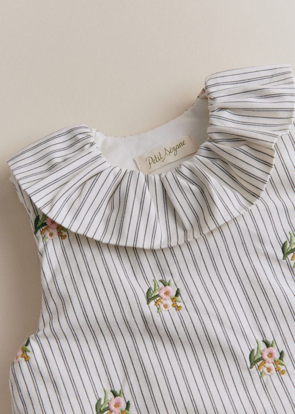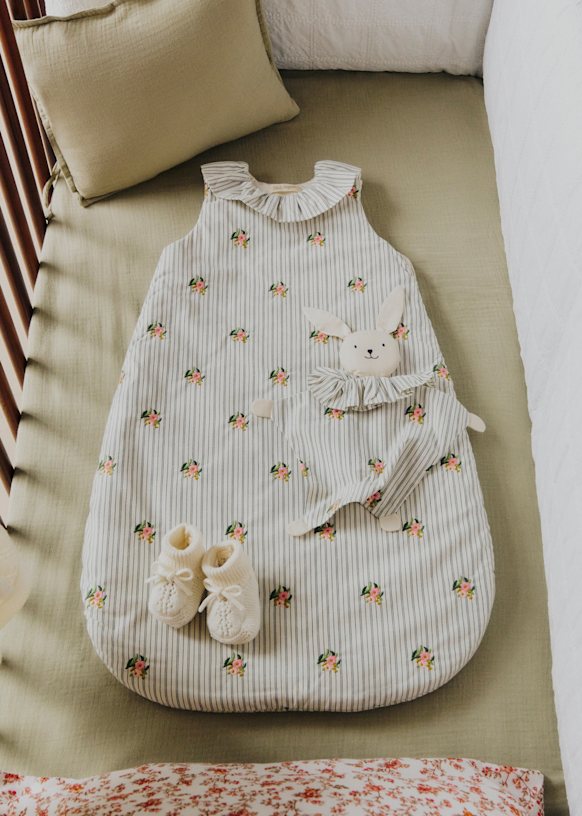 Saco De Dormir Rayado Con Bordado De Flores
