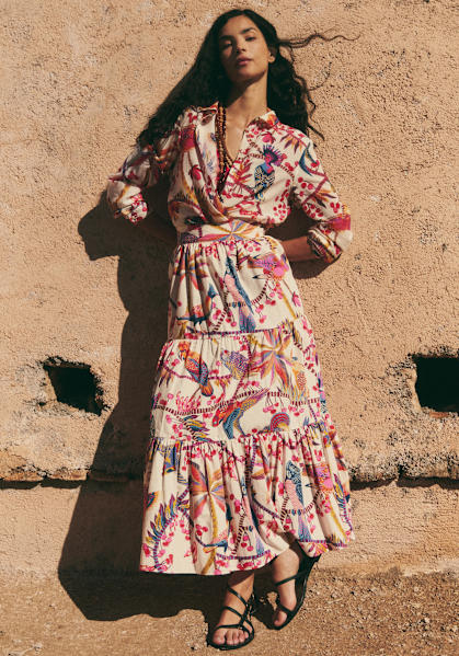 Sézane invita a Inoui Éditions, casa francesa especializada en complementos textiles con diseños singulares, para crear una Colaboración repleta de color y estampados.