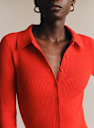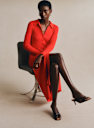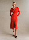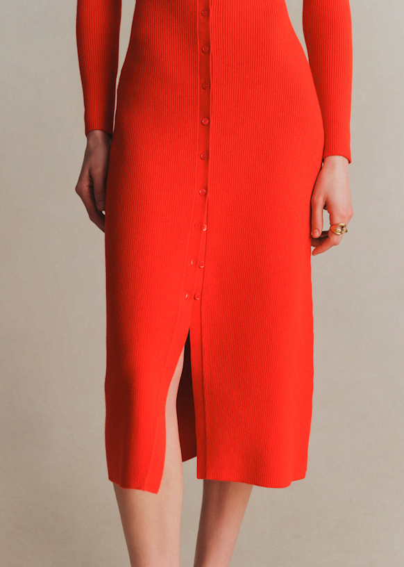 - Vestido midi ajustado de lana merino y algodón orgánico de manga larga