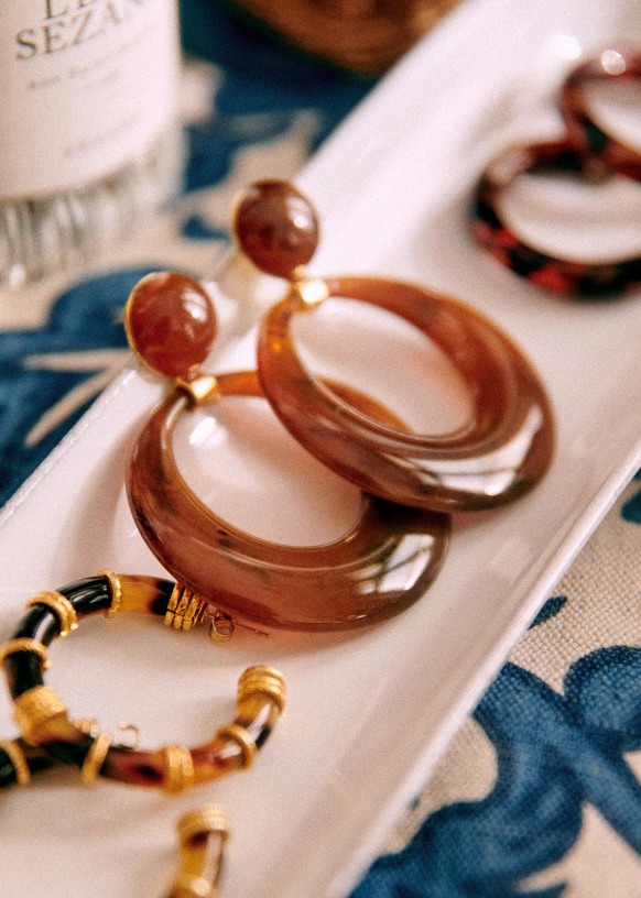 - Boucles d'oreilles en laiton doré à l'or fin et résine
