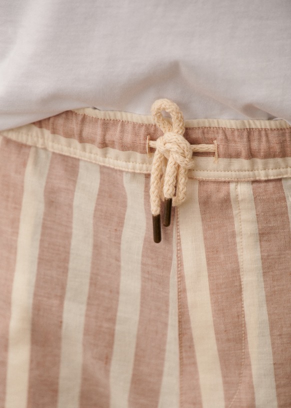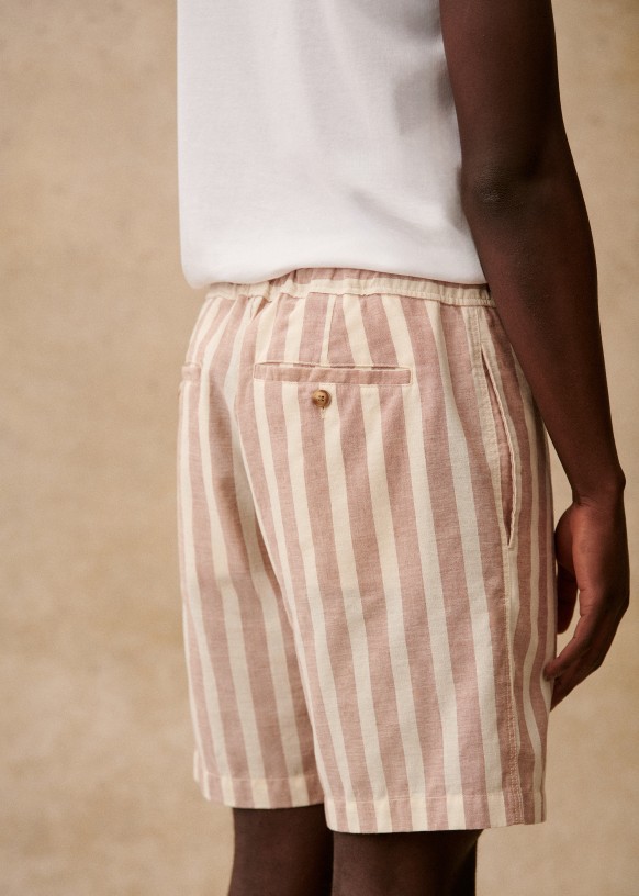 Confectionné dans un coton lin souple et confortable, ce short élastiqué à la coupe mi-longue et élargie au niveau des cuisses vous apportera confort et légèreté.