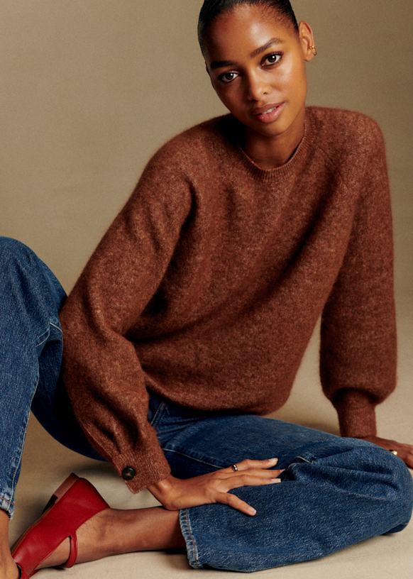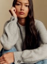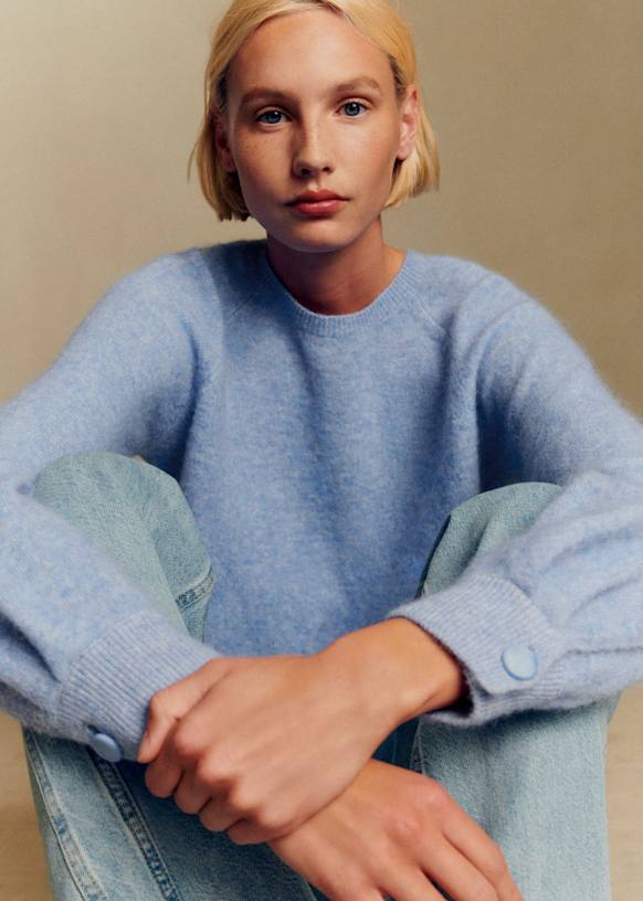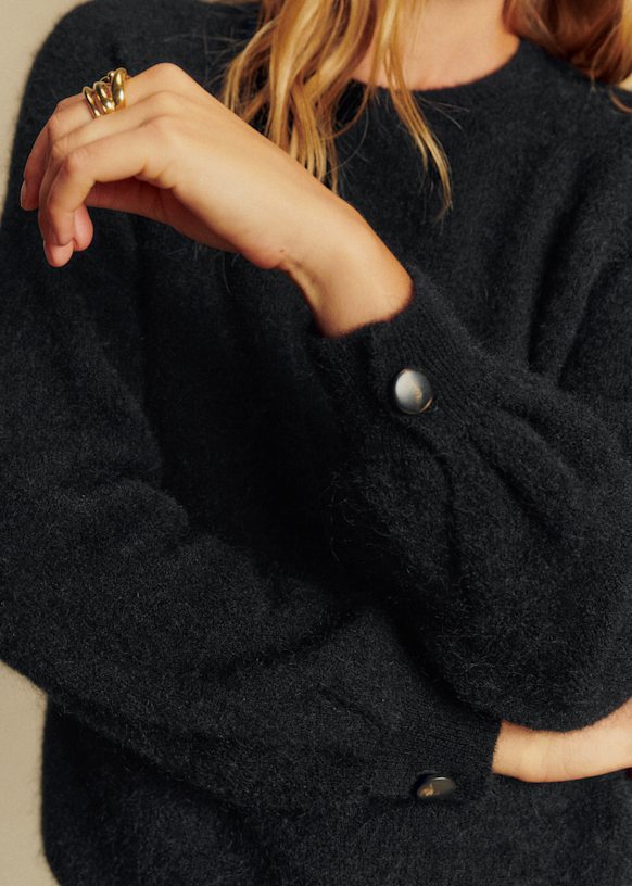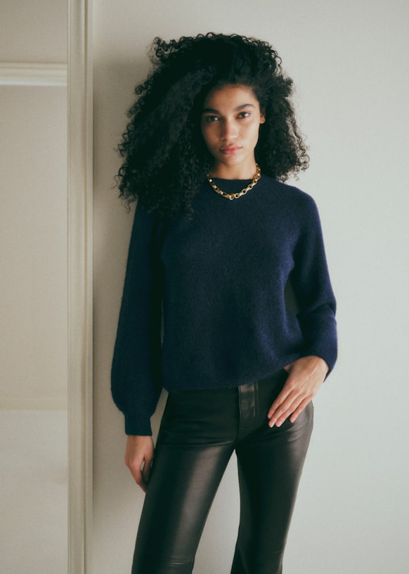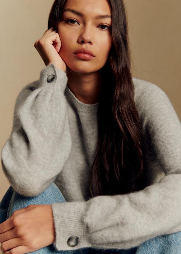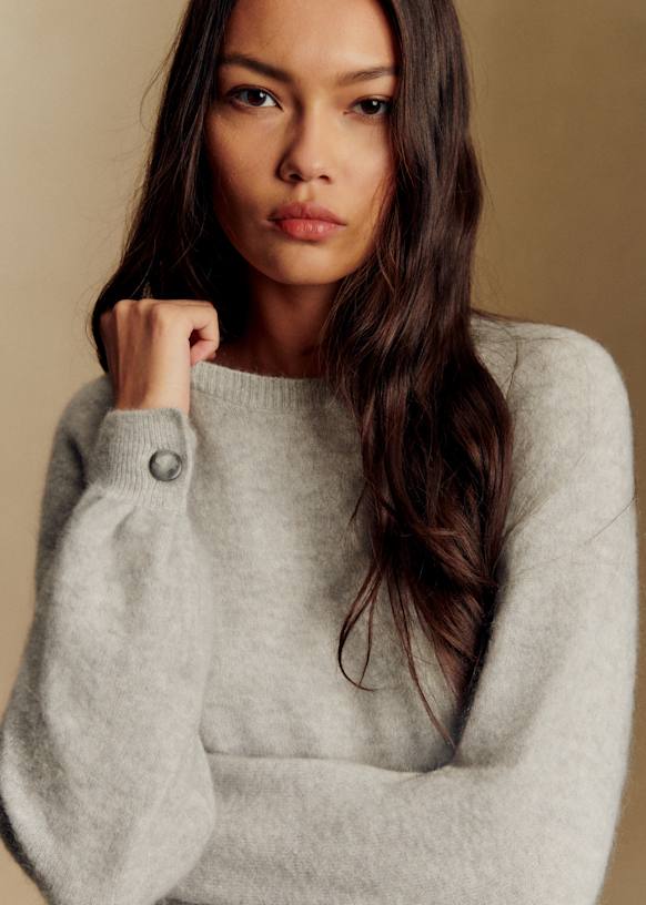 - Pull en laine mérinos et super kid mohair à manches longues légèrement ballon