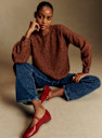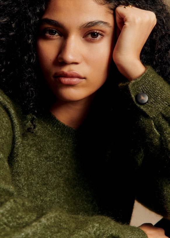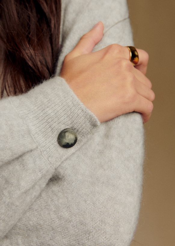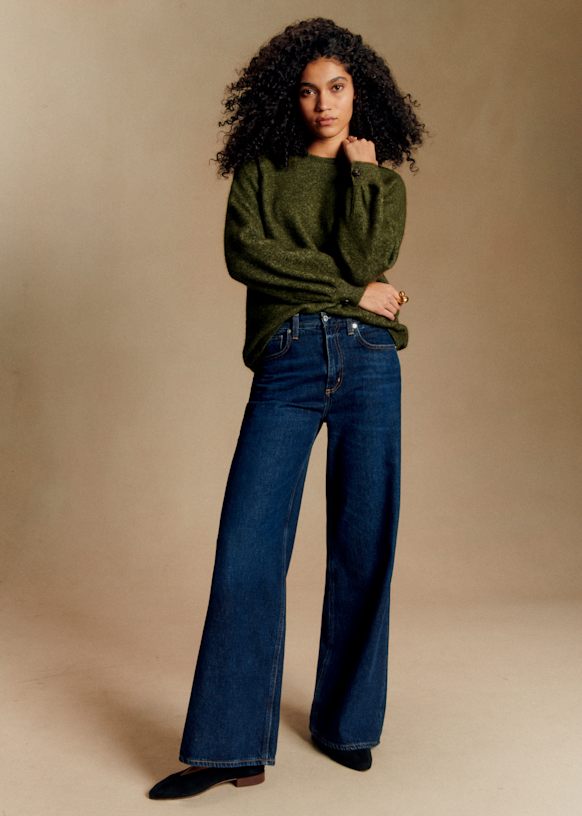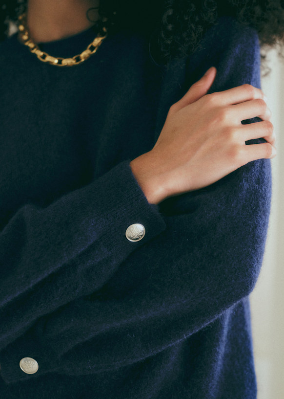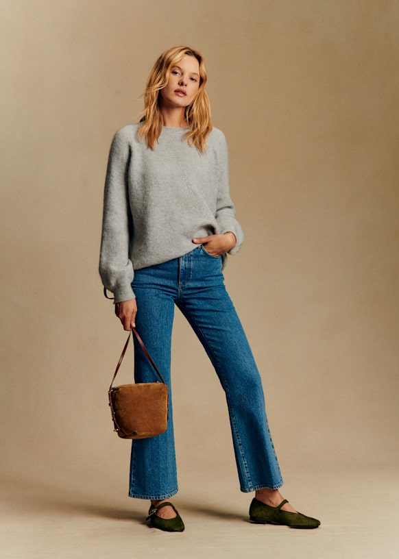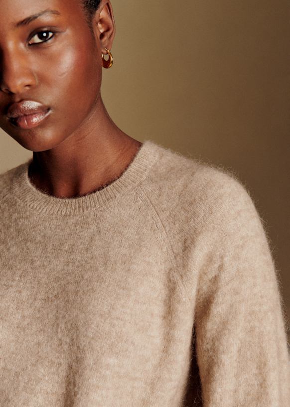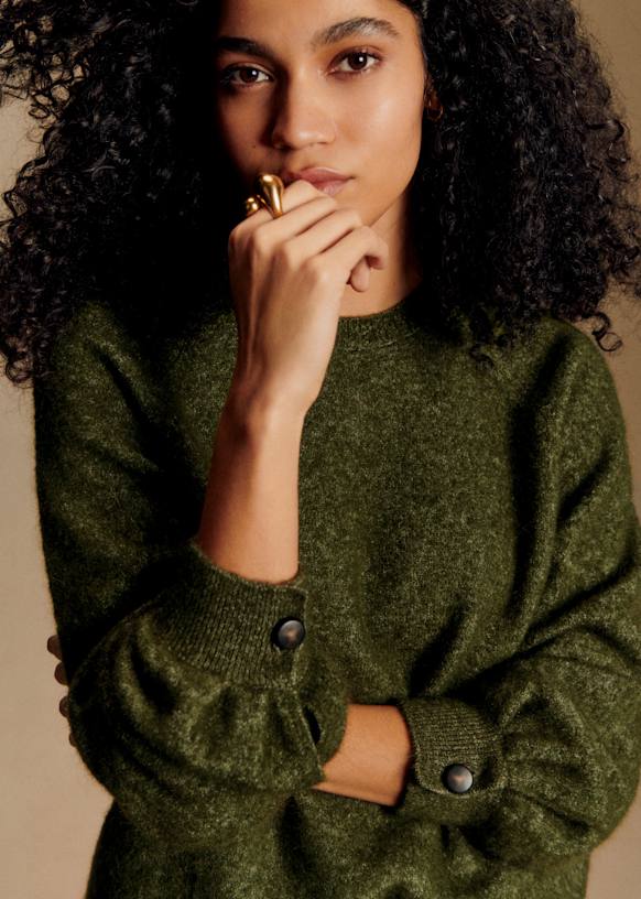 - Pull en laine mérinos et super kid mohair à manches longues légèrement ballon