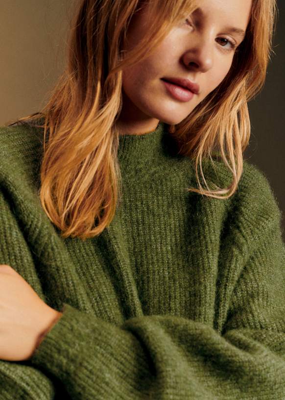 - Tricotage torsadé au col, aux emmanchures, aux poignets et en bas de corps