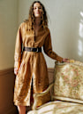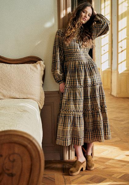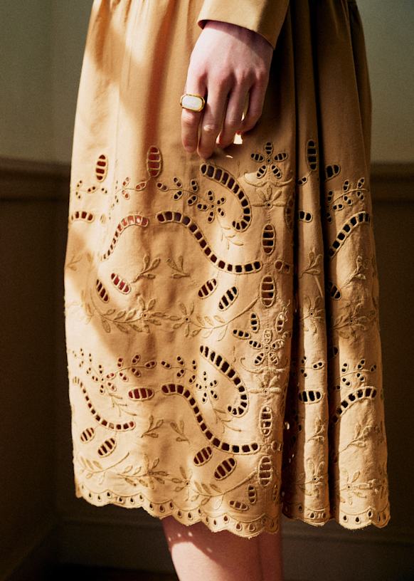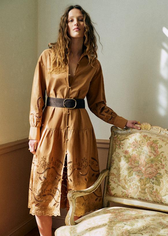 - Robe midi brodée en popeline à manches longues