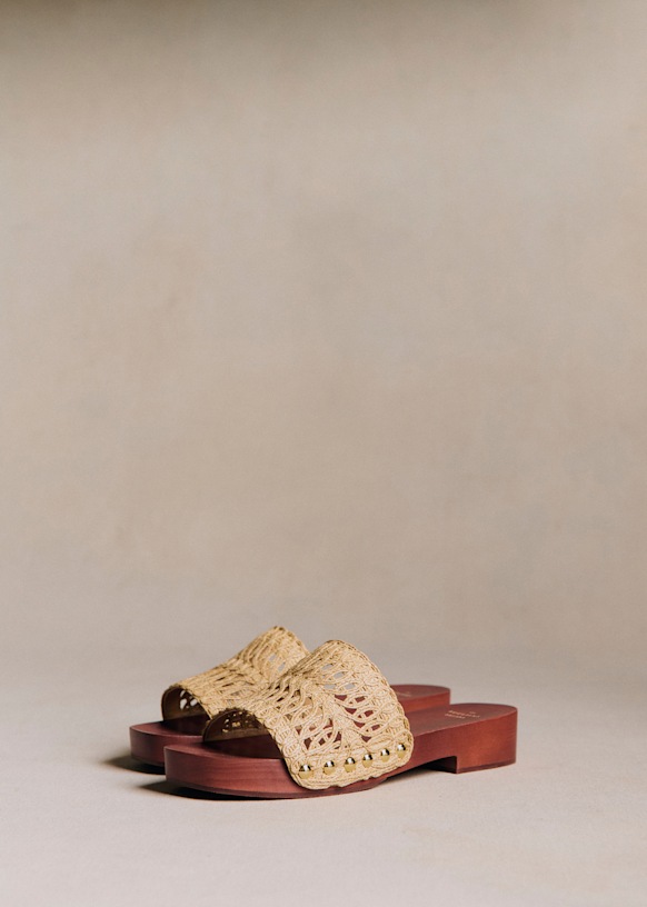 - Semelle extérieure en bois et gomme