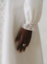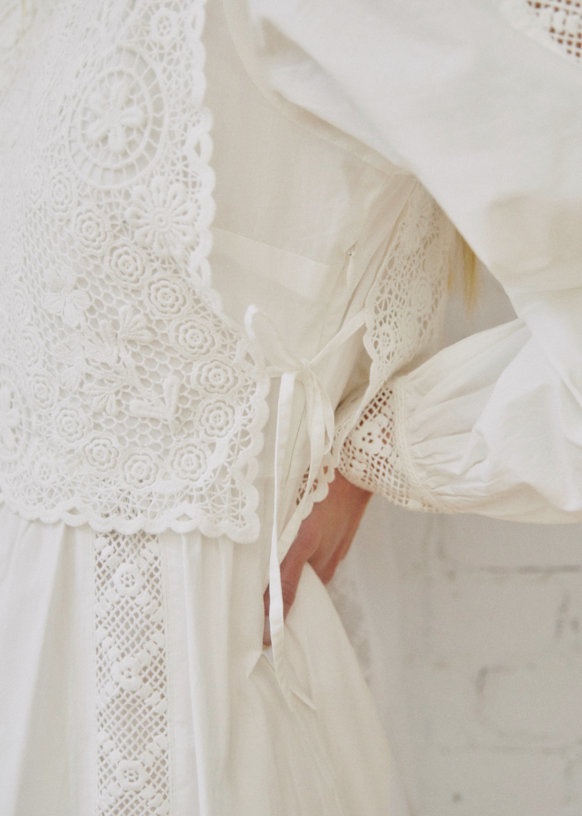 - Bande di pizzo inserite sul davanti, sul retro, sulle maniche e ai polsini