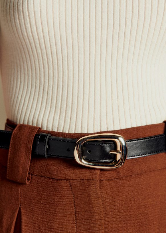 - Chiusura con fibbia ad ardiglione, finitura oro chiaro