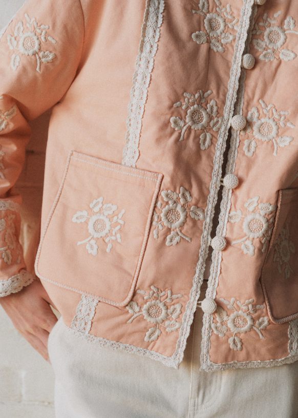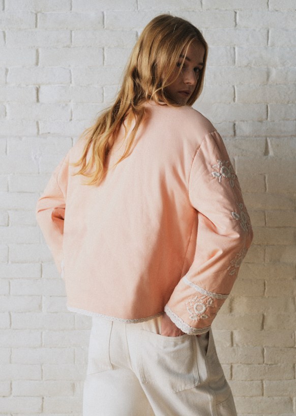 - Giacca corta trapuntata e ricamata a maniche lunghe