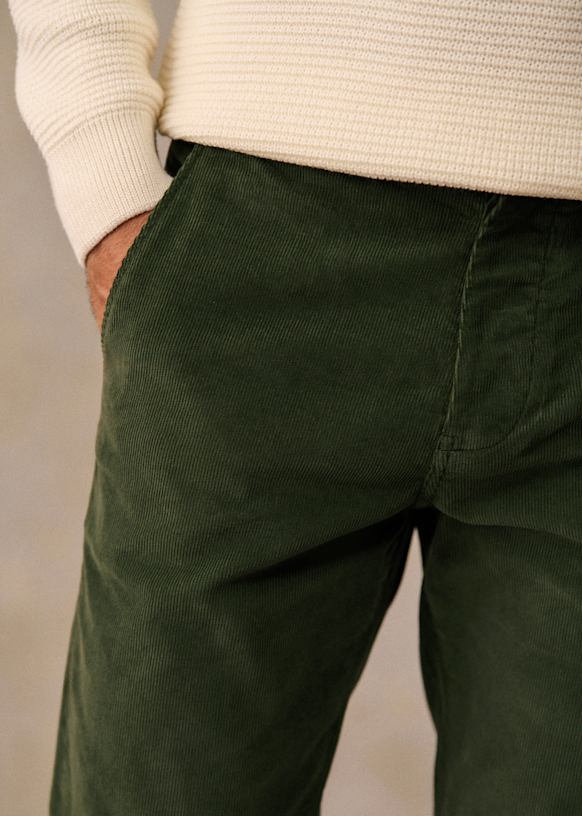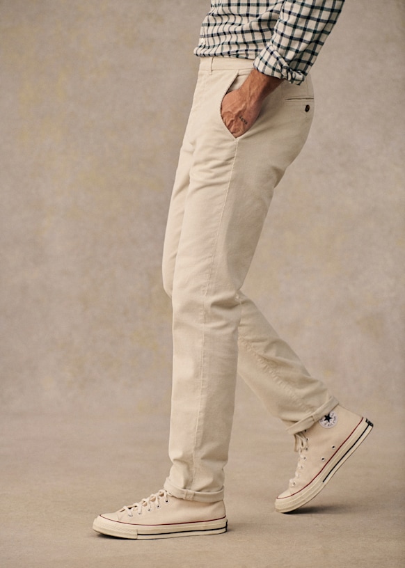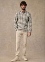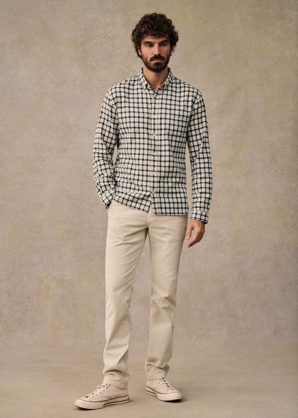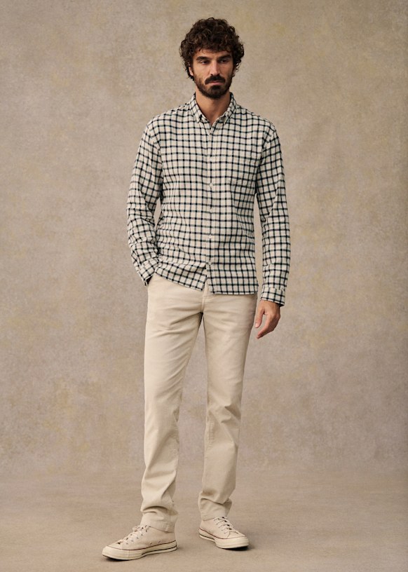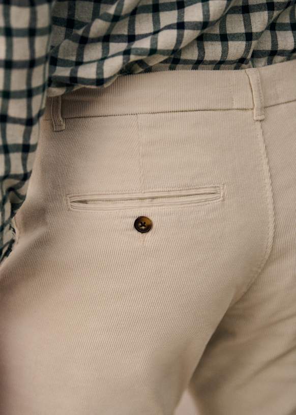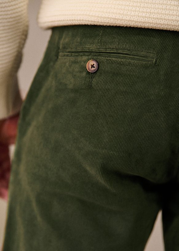 - 2 tasche posteriori a filetto con bottone di chiusura