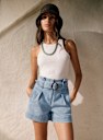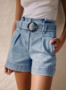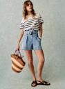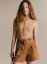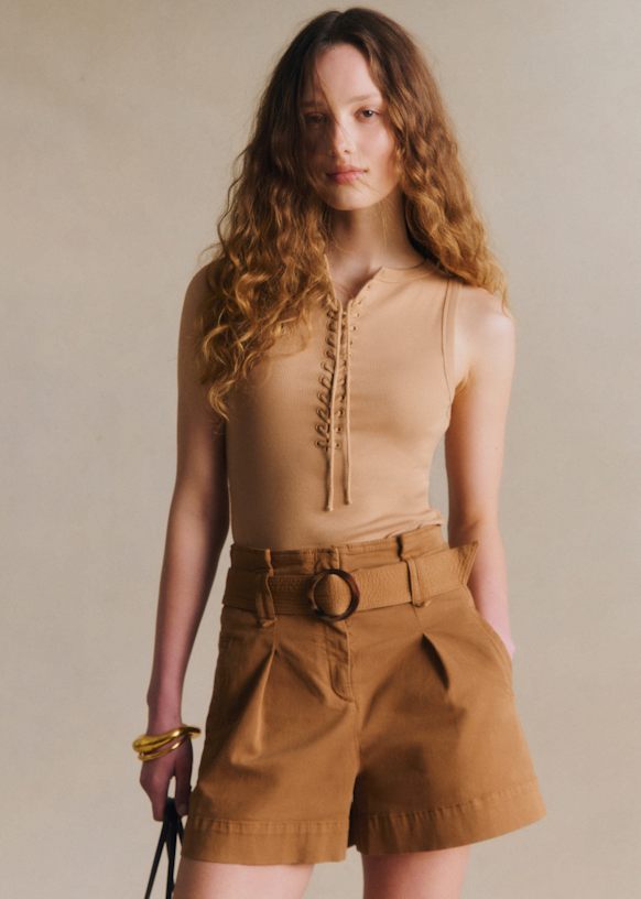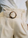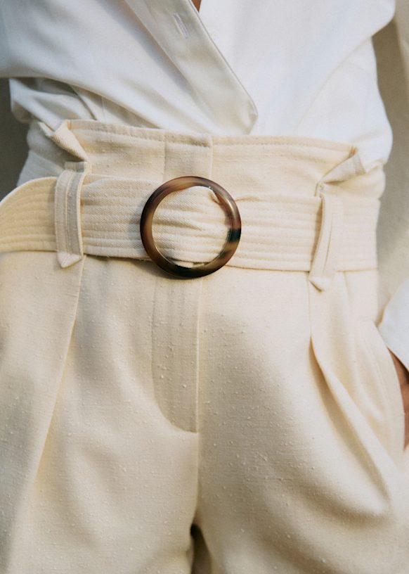- Pieghe trapuntate sul davanti e orlo trapuntato sul fondo della gamba