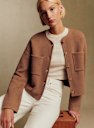 - Giacca corta in lana merino e cotone biologico con maniche lunghe