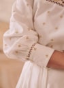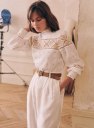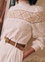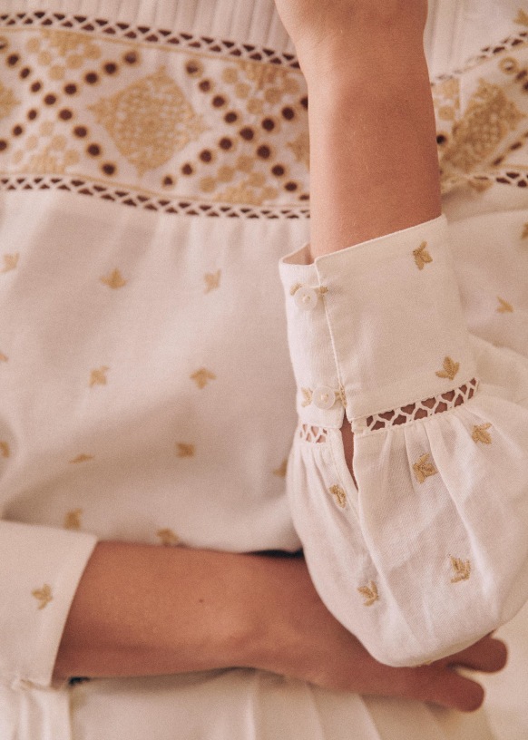 - Strook met opengewerkt borduursel boven de borst en rondom de mouwen