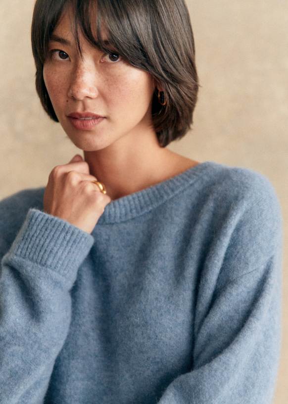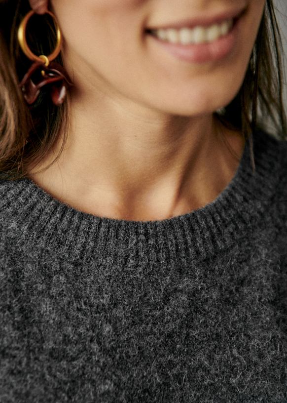 - Korte jurk van baby alpaca met lange mouwen