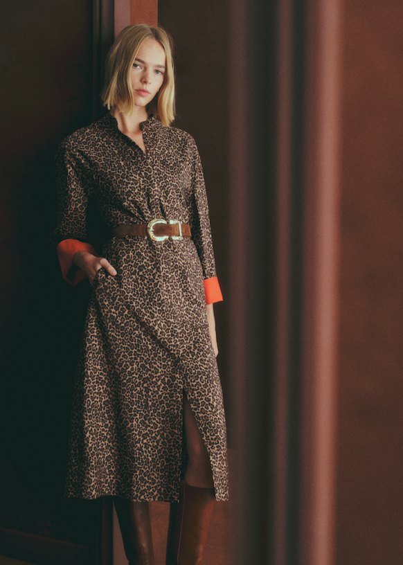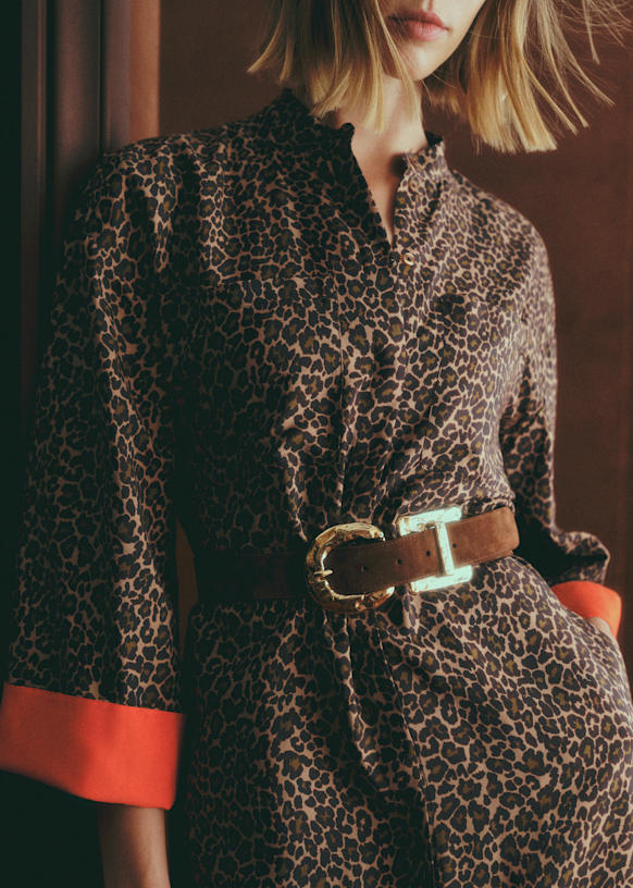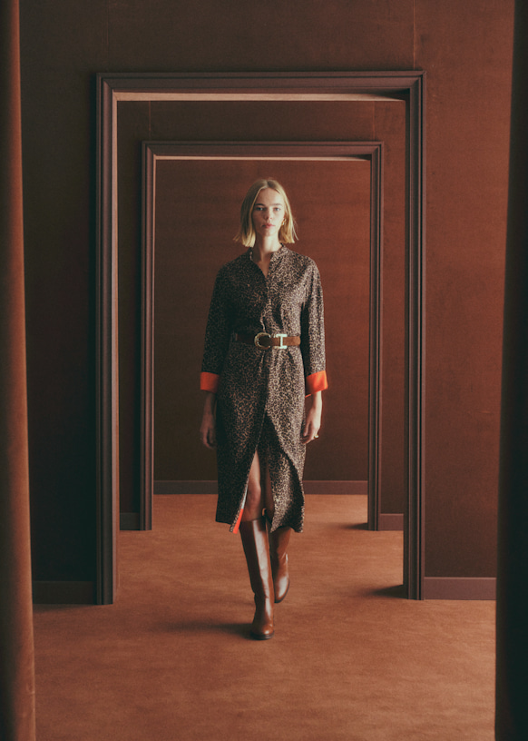 - Bedrukte midi-jurk van zijdeviscose met lange mouwen