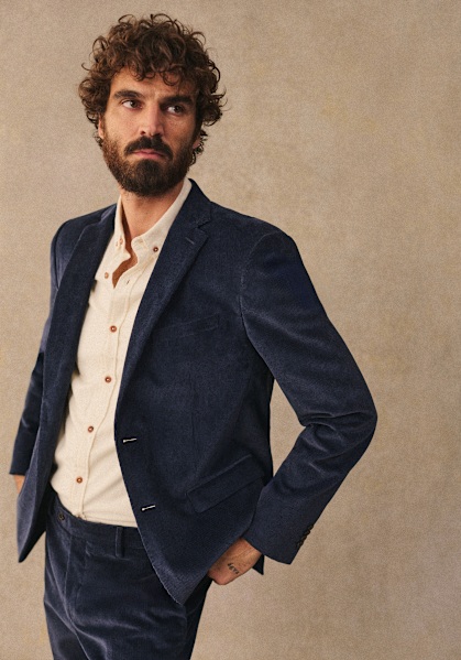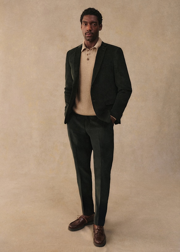 This classic two-button suit is a menswear essential. Its crushed twill fabric enhances its autumnal touch.