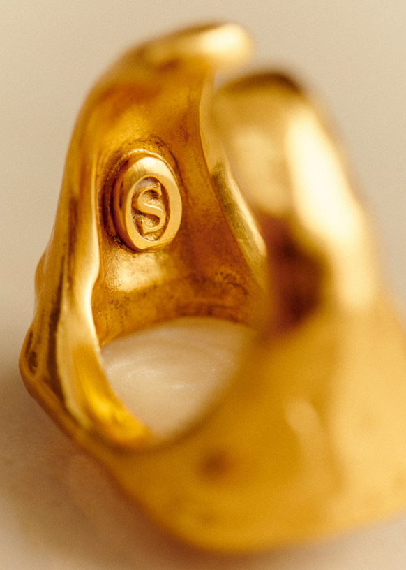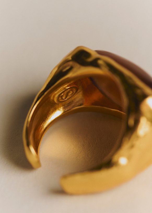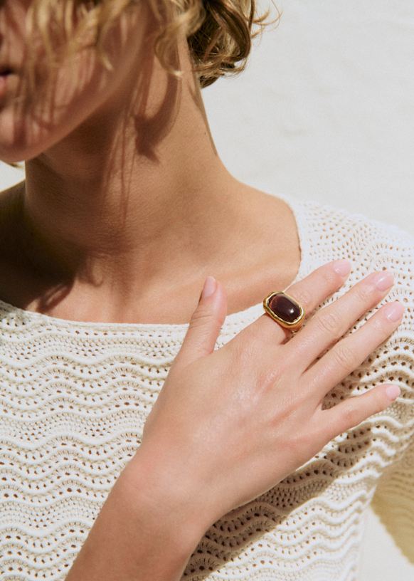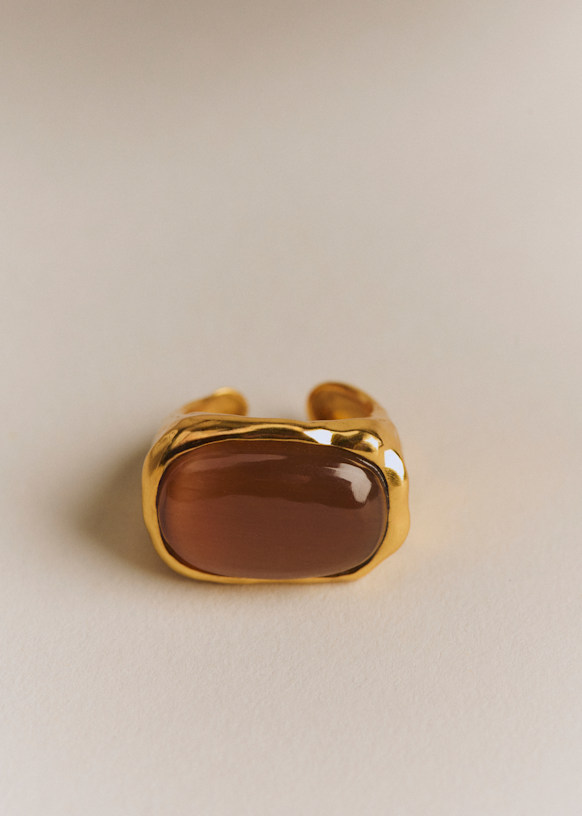 - Ring van gerecycled messing vergulde van verfijnd goud en glas