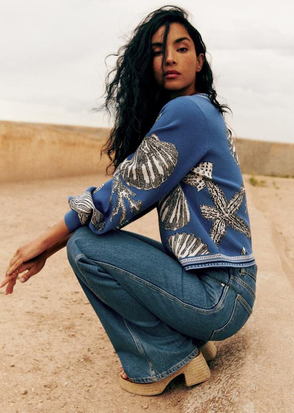Sézane nodigt Inoui Éditions, een Frans huis gespecialiseerd in sjaals met bijzondere motieven, om een samenwerking te creëren volop kleuren en prints.