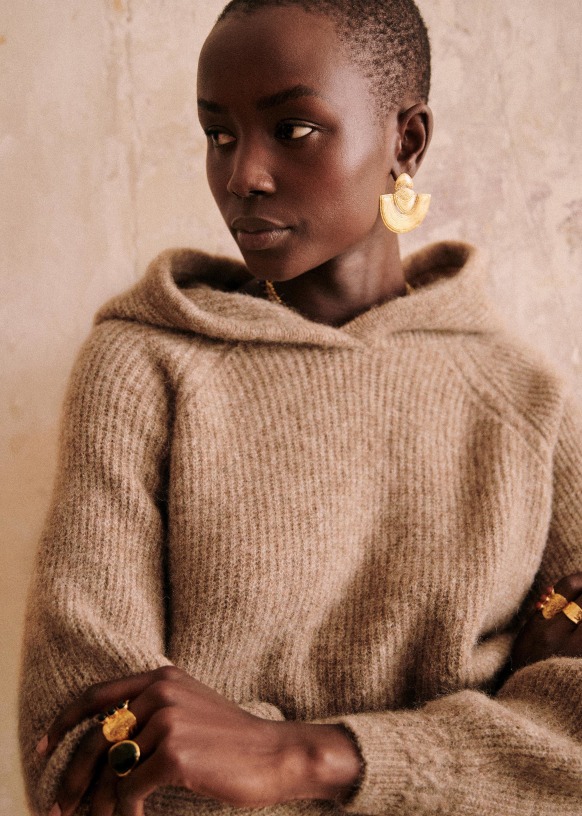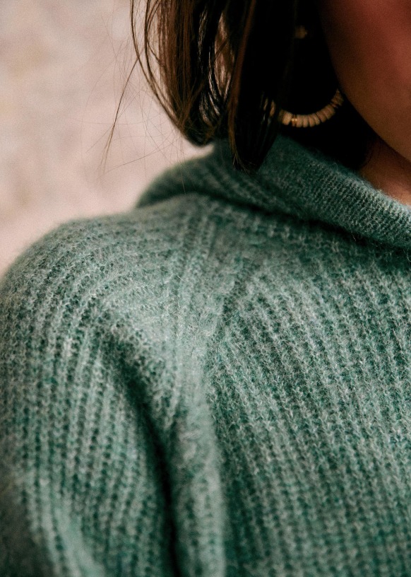 - Tricotage torsadé au col, aux emmanchures, aux poignets et en bas de corps