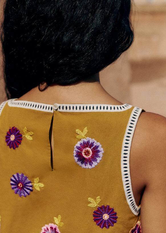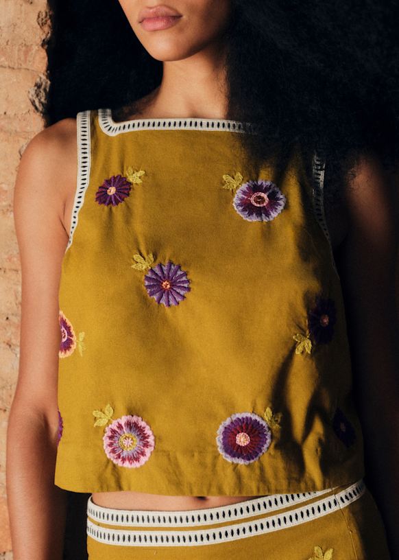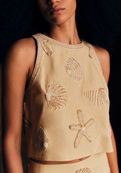 - Top brodé court sans manches