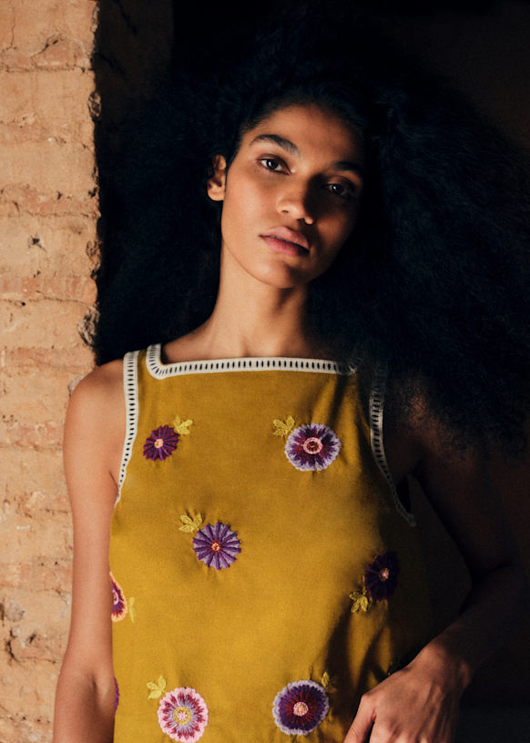 Sézane invite Inoui Éditions, maison française spécialisée dans les foulards aux motifs singuliers, pour imaginer une Collaboration haute en couleurs et en imprimés.