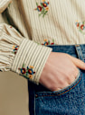 - Chemise rayée brodée à manches longues