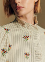 - Volant brodé sur la patte de boutonnage et au col