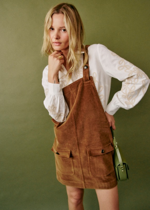 - Broderies contrastées sur le devant et les manches