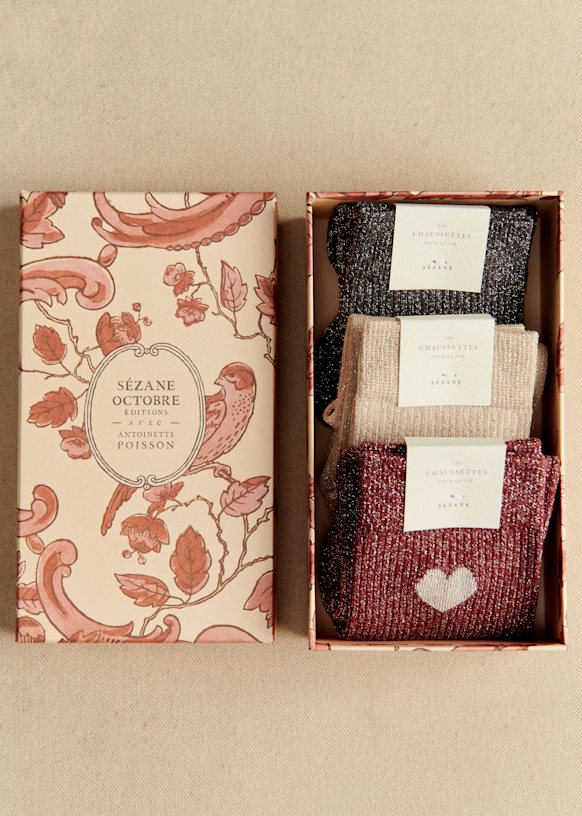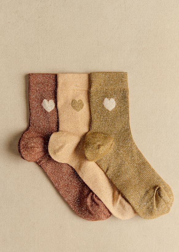 - Coffret de 3 chaussettes lurex coeur
