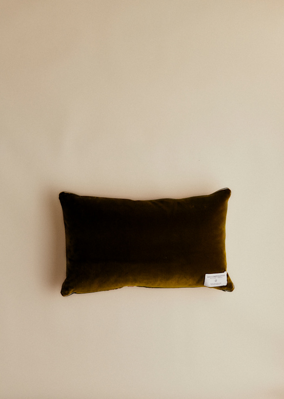 Coussin vintage velours kaki - Petit modèle
