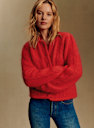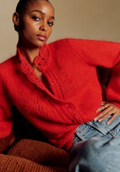 - Gilet court en laine mérinos et kid mohair à manches longues