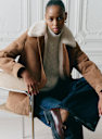 - Manteau mi-long en peau lainée