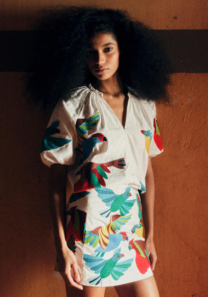 Sézane invite Inoui Éditions, maison française spécialisée dans les foulards aux motifs singuliers, pour imaginer une Collaboration haute en couleurs et en imprimés.
