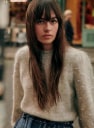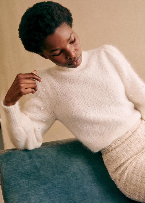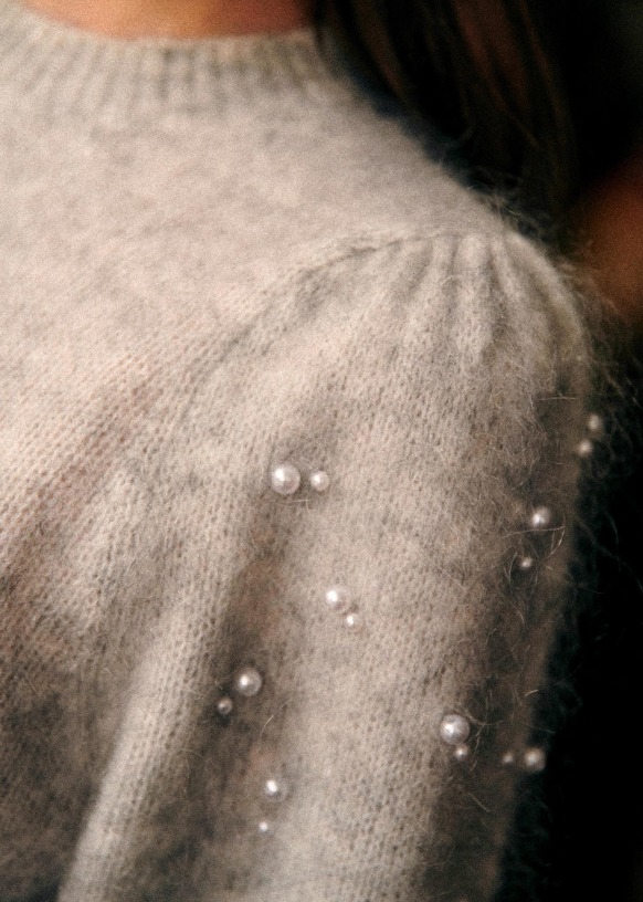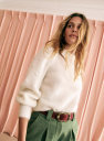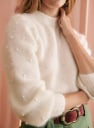 - Pull en laine et kid mohair à manches longues légèrement ballon