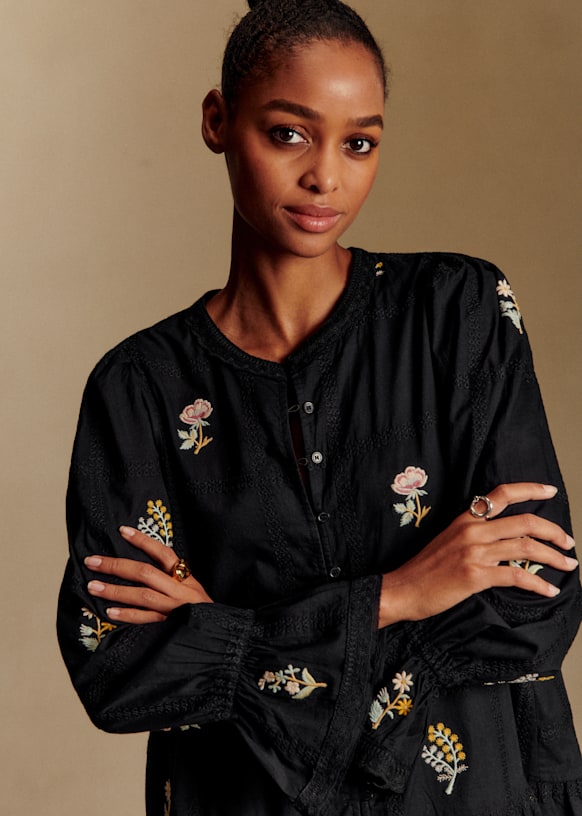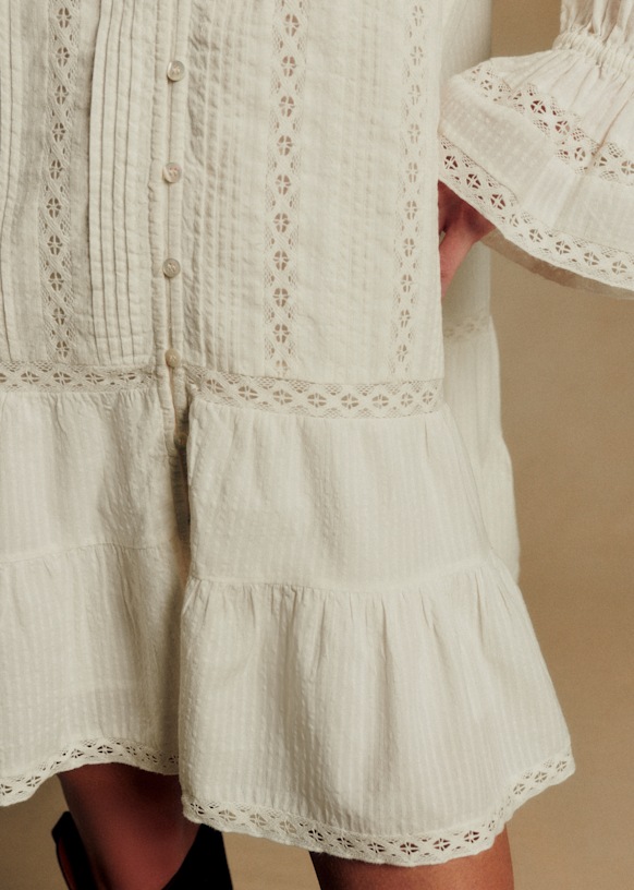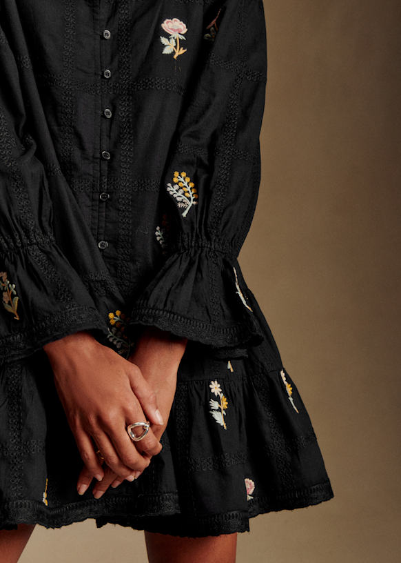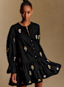 - Robe courte brodée à manches longues