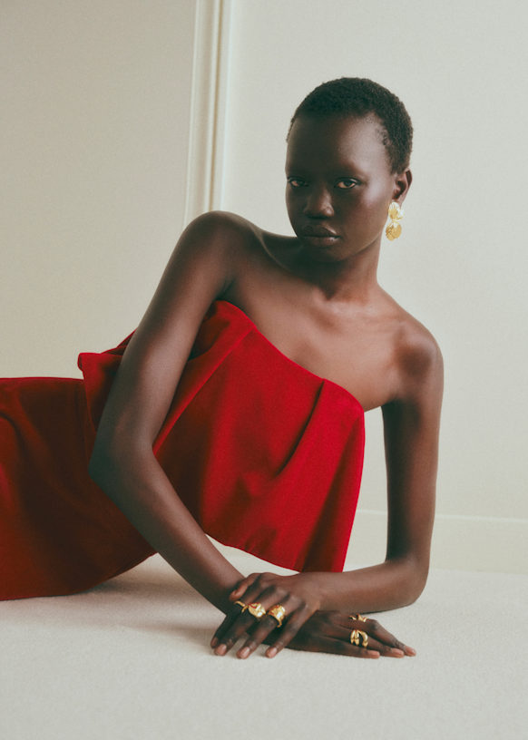 - Bustier en velours avec volants