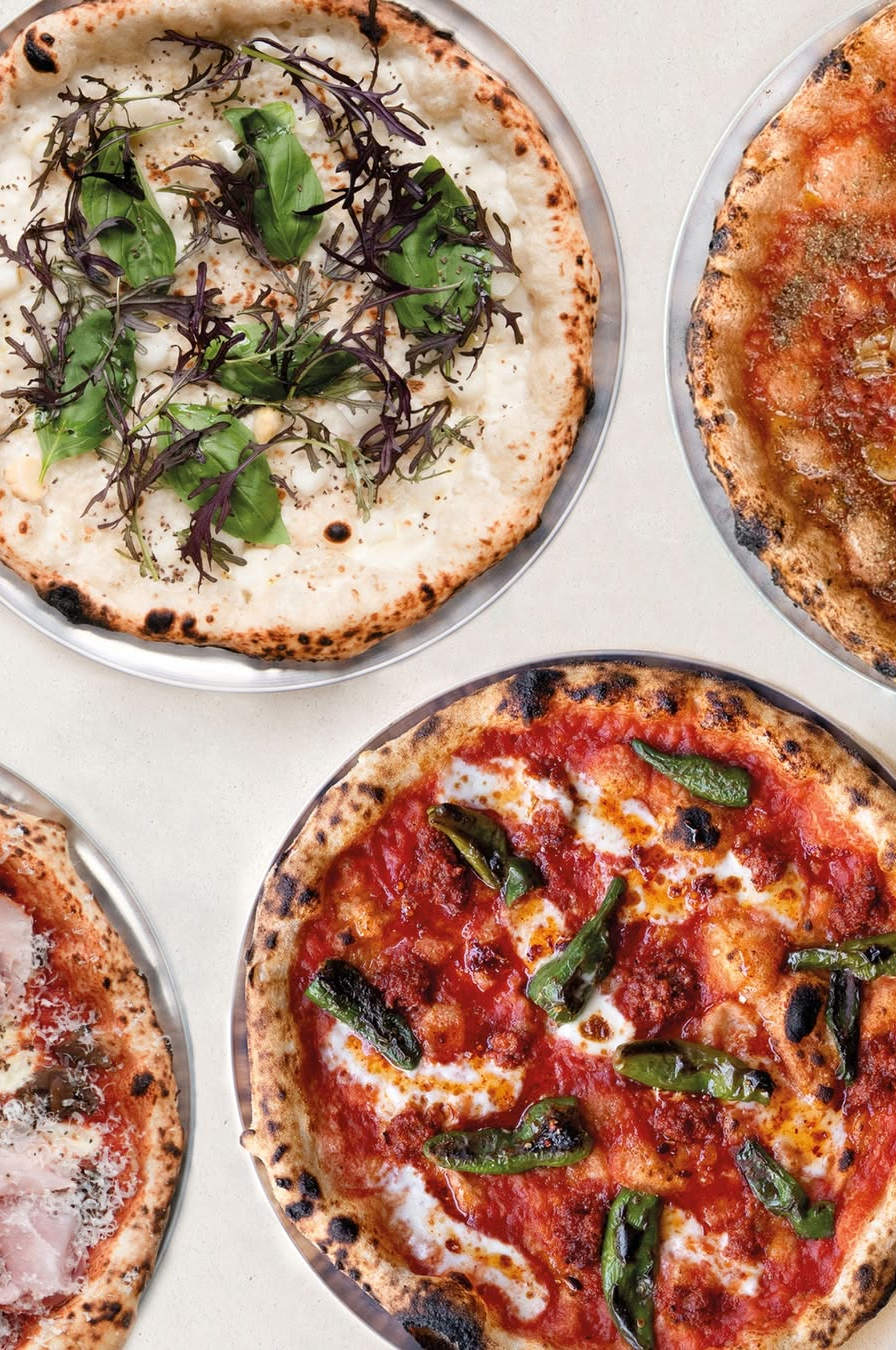 Sourdough Neapolitan pizza made with local ingredients, served in a soft-hued pastel setting you’ll never tire of.
