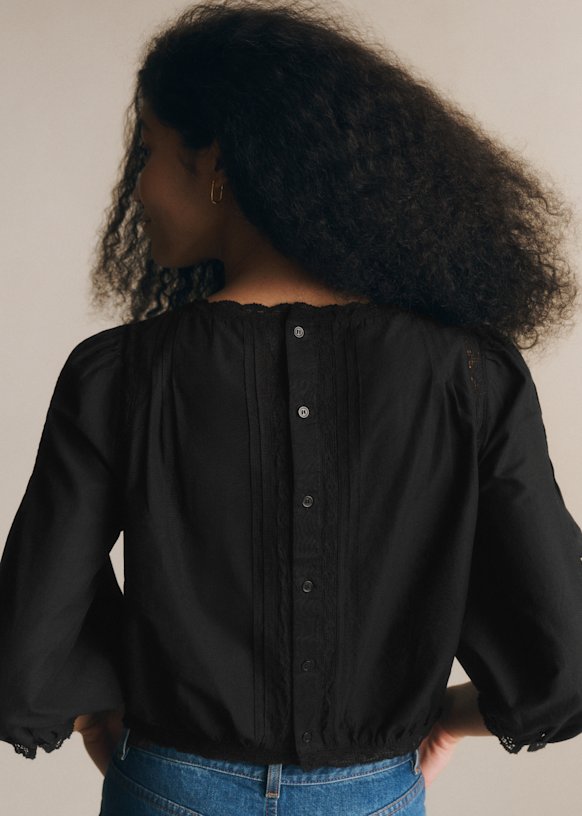 • Bande di pizzo inserite sul davanti e in fondo alle maniche