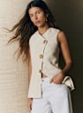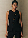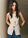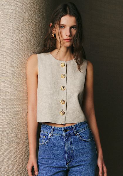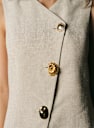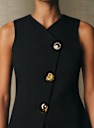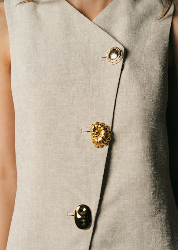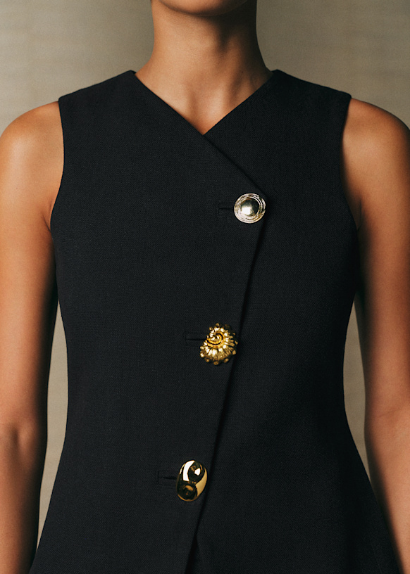 - Abbottonatura centrale davanti asimmetrica con 3 bottoni gioiello spaiati