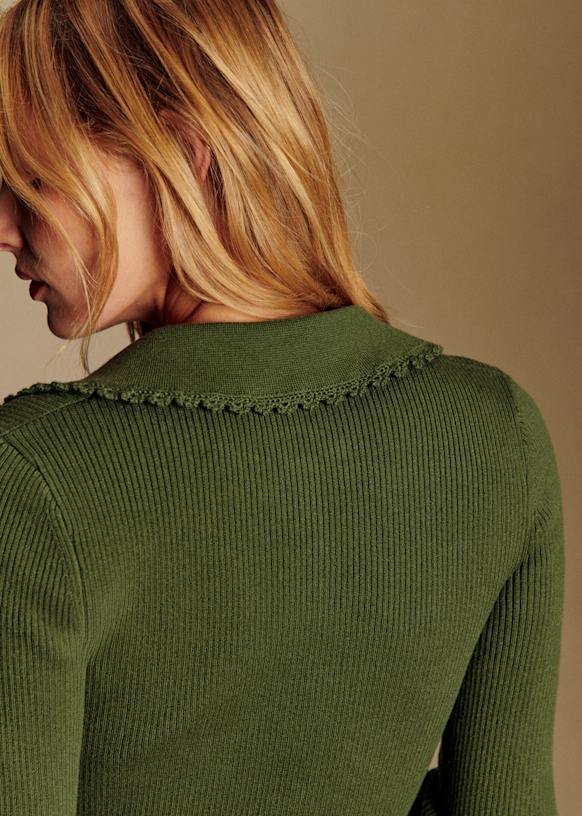 - Colletto a camicia con finitura all'uncinetto