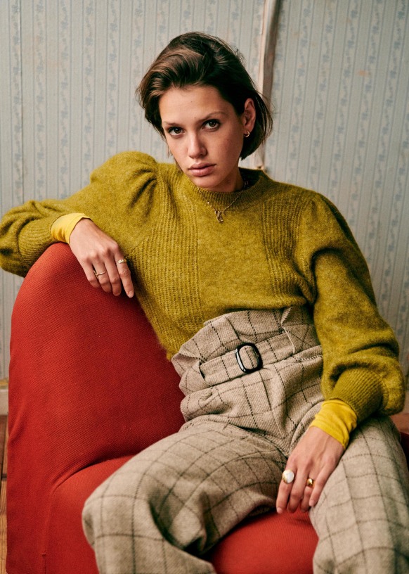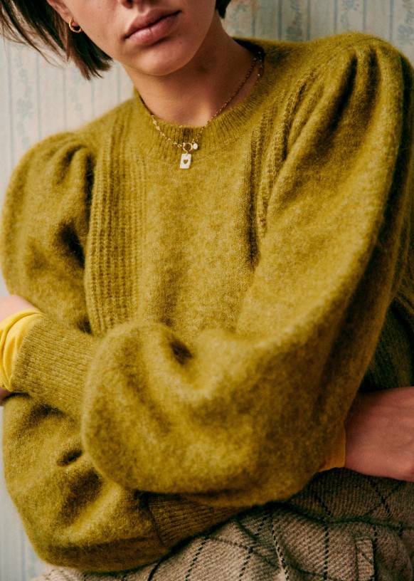 - Maglia in kid mohair e merino a manica lunga, leggermente a palloncino