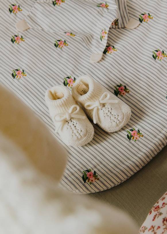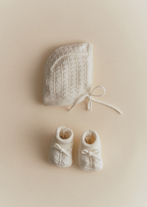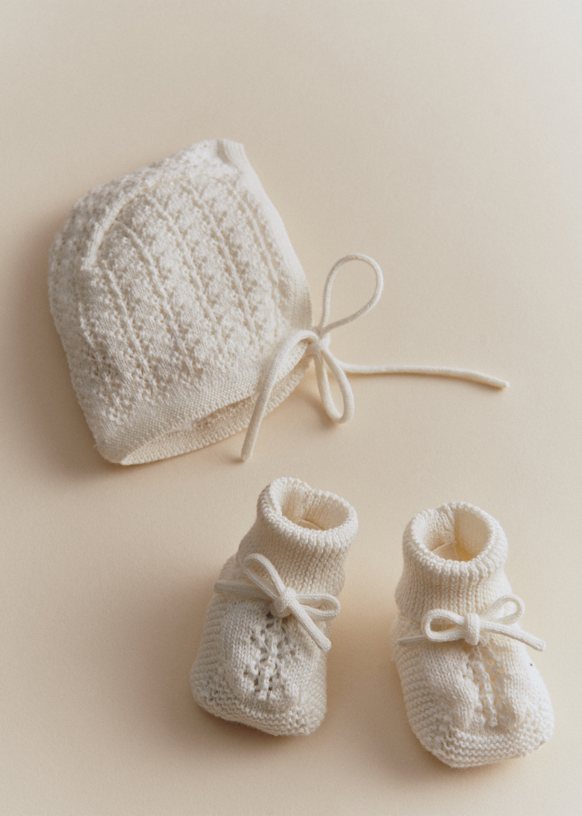 - Scarpine lavorate a maglia in lana merino e cotone biologico