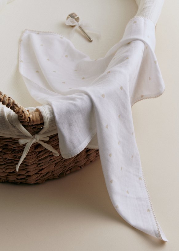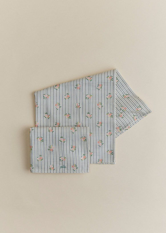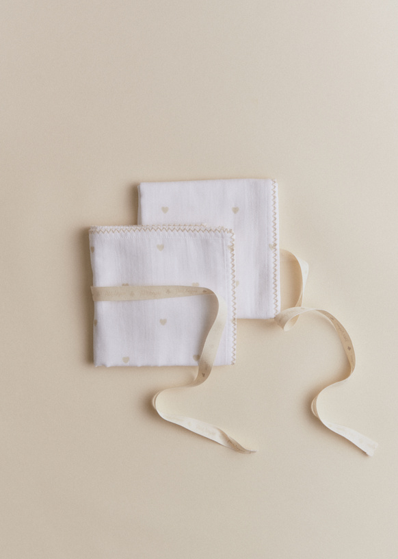 - Set di due teli in cotone stampato cuore